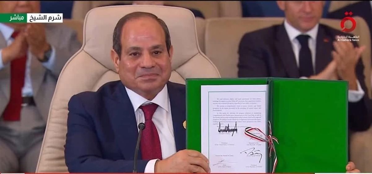 وأضاف: " القائد عبد الفتاح السيسي الذي وقع اتفاق غزة وفعل ما لم يستطيع فعله رؤساء وقاده طالما ادعو إنهم حماة السلام”.