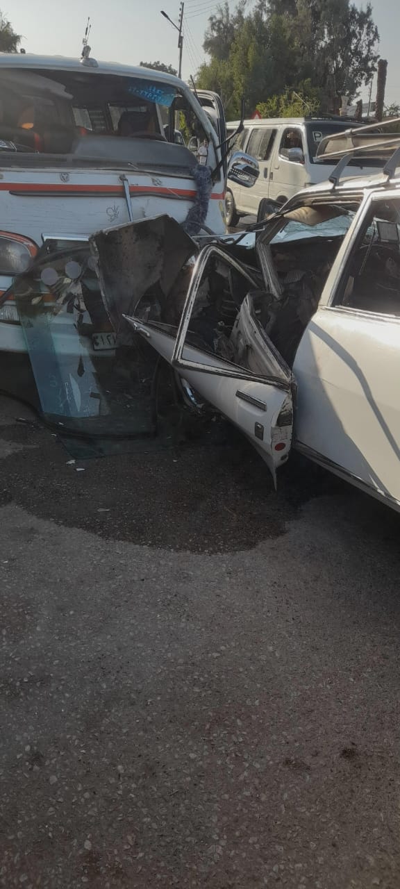 تلقت مديرية أمن قنا، إخطارًا اليوم يفيد بوقوع حادث تصادم سيارة سرفيس وسيارة بيجو بالقرب من كافتيريا الشقيفي بطريق نجع حمادي - أبو تشت الزراعي بمحافظة قنا .