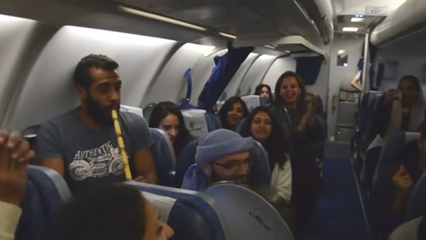 الشاب لقي تجاوب غير عادي من ركاب الطائرة، وظلوا يرددون خلفه كلمات الأغنية الشهيرة، بعدما أحدث حالة من البهجة والفرحة للعودة إلى أم الدنيا.