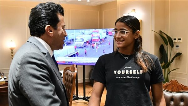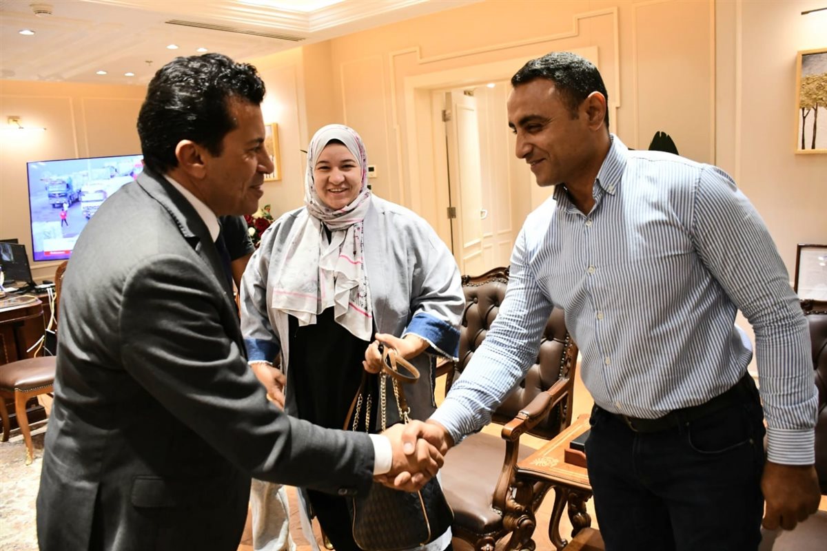 وزير الرياضة يلتقي بطلة مصر والعالم فى الخماسي الحديث