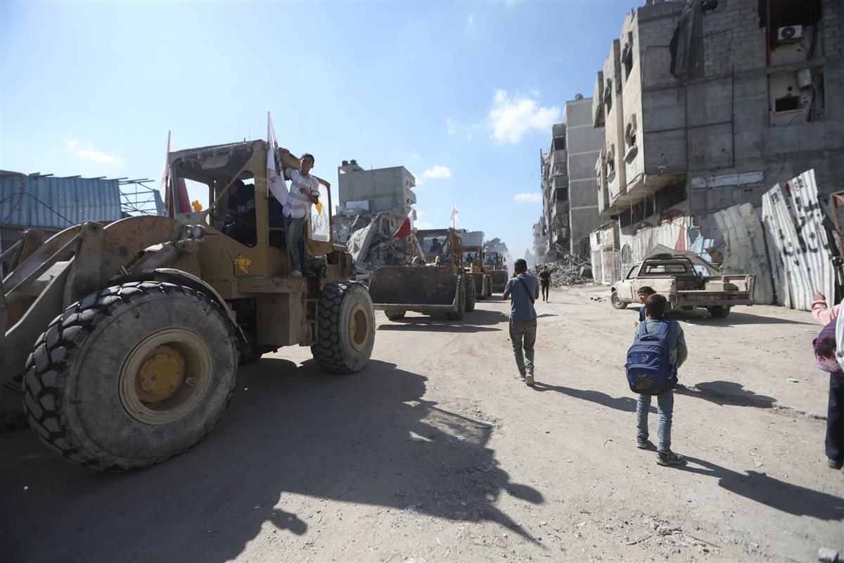 هنعمرها بأيدينا، جهود مكثفة بالآليات الثقيلة لإعادة فتح الطرق المدمرة في غزة (فيديو وصور)