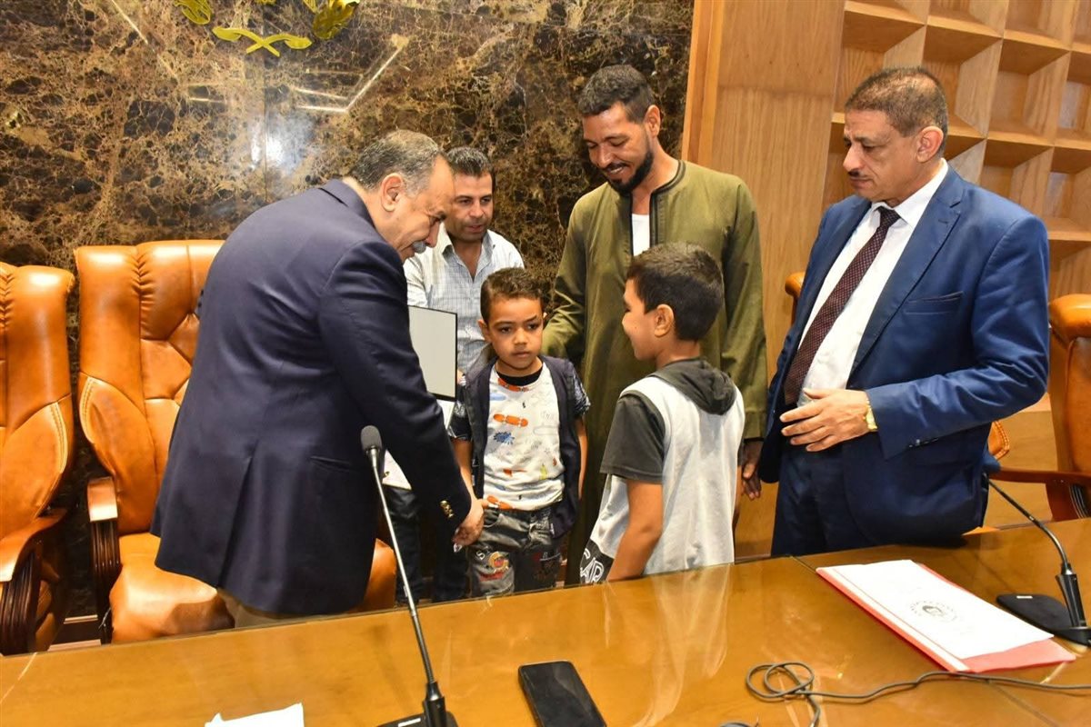 شهامة الصعايدة، محافظ أسيوط يكرم بطل أنقذ أطفال "تروسيكل منقباد" من الغرق