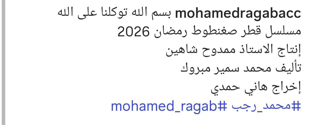 وكتب نصًا: “بسم الله توكلنا على الله، مسلسل قطر صغنطوط رمضان 2026، إنتاج الاستاذ ممدوح شاهين، تأليف محمد سمير مبروك ، إخراج هاني حمدي”.