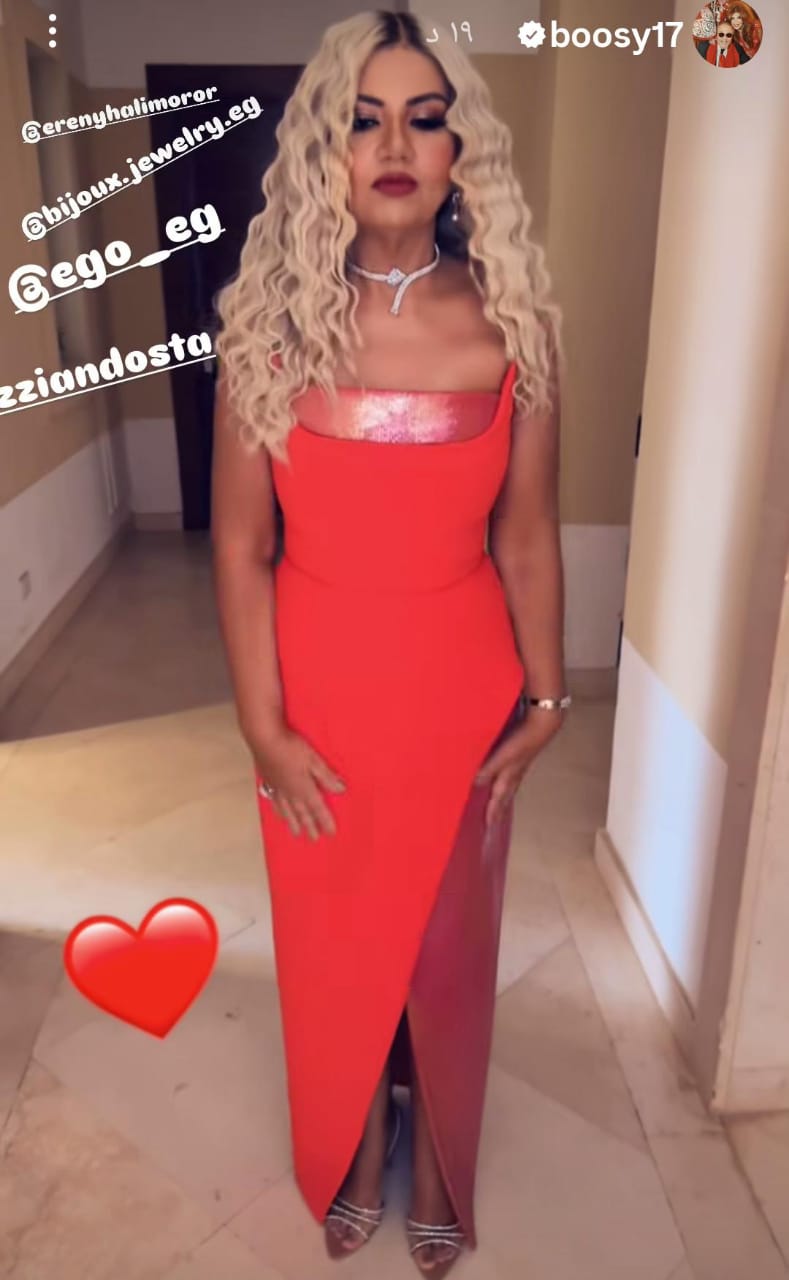 بشعر أصفر كيرلي وفستان أحمر، بوسي شلبي تستعد لحفل افتتاح مهرجان الجونة 2025