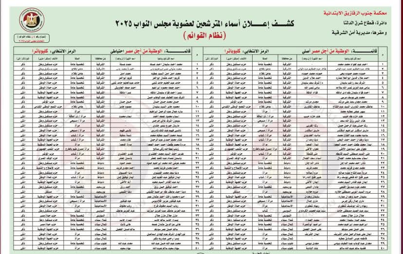 أسماء القائمة الوطنية من أجل مصر في انتخابات مجلس النواب 2025، قطاع شرق الدلتا