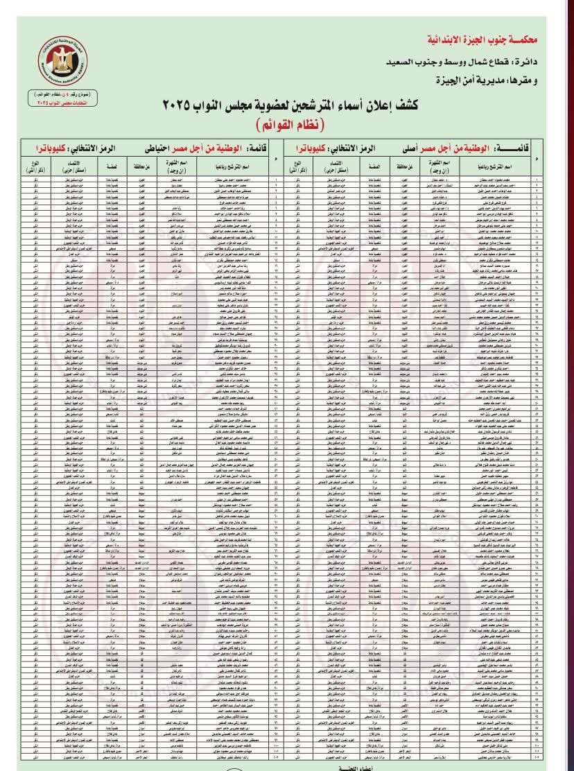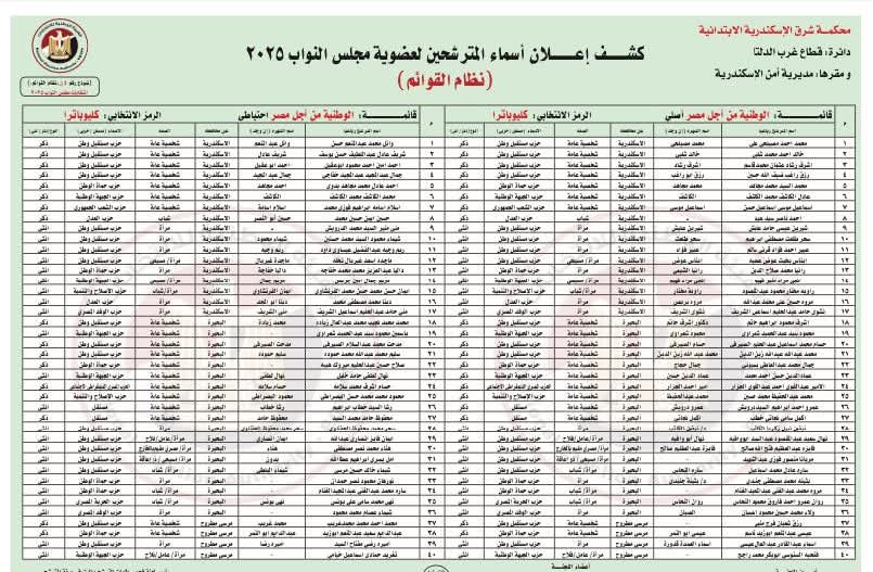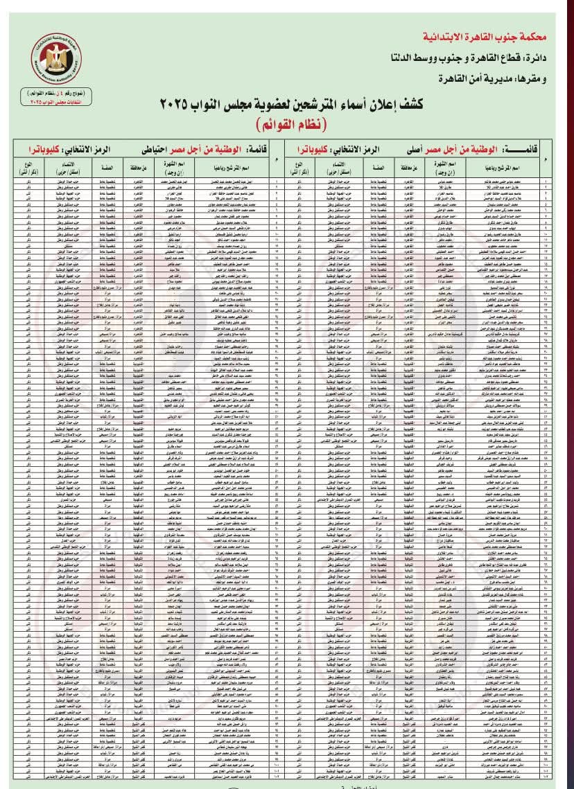 أسماء القائمة المبدئية لمرشحي مجلس النواب بالقوائم،2025، الوطنية للانتخابات تكشف التفاصيل