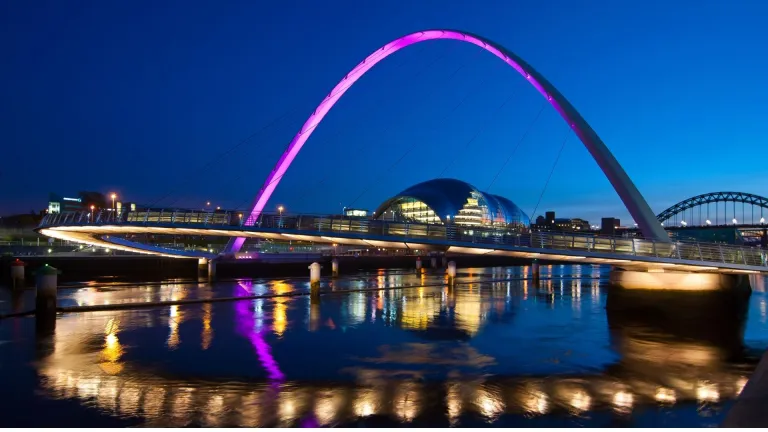 جسر جيتسهيد ميلينيوم، جسر للمشاة بطبيعته، اكتسب لقب "العين الغامزة" لآليته الثورية في الإمالة. وهو أول جسر في العالم يدور كوحدة متكاملة بدلاً من أجزاء رافعة أو متأرجحة.