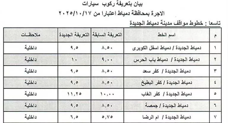 تعريفة ركوب محافظة الدقهلية بعد زيادة أسعار البنزين