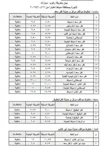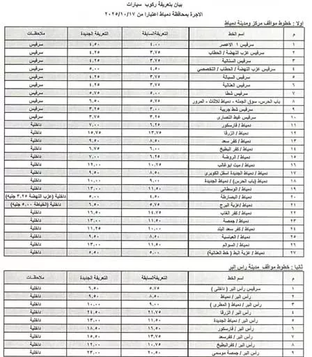 تعريفة ركوب محافظة الدقهلية