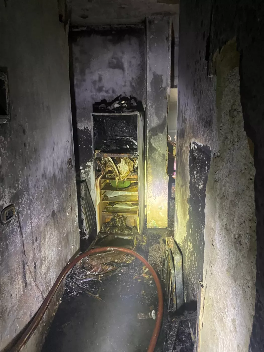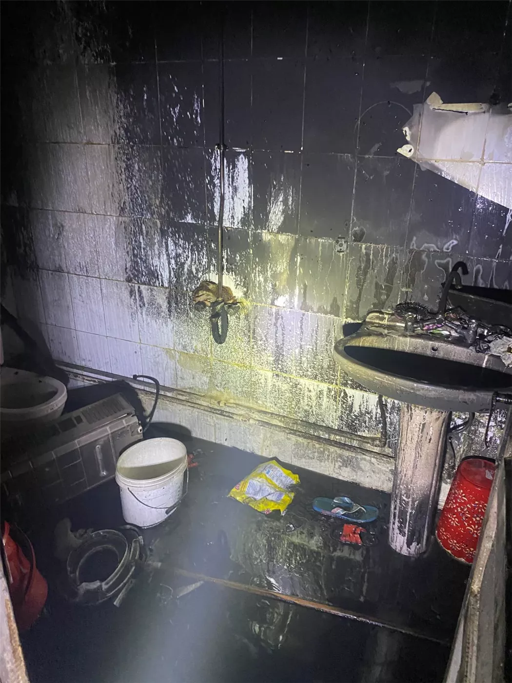وتبين بعد الفحص ، نشوب حريق داخل شقة بالكامل مساحتها مساحتها ٦٥ متر تقريبا بالطابق الثاني بعقار مكون من ٦ طوابق وتمت عملية الاطفاء والتبريد بمعرفه القوات، وعقب الإطفاء تبين سيدة متوفية مصابة ببعض الحروق داخل غرفة النوم وتدعي "نفيسه.م.ع"( كفيفه ) وتم نقلها الى المستشفى واتخاذ الإجراءات القانونية اللازمة تجاه الواقعة.