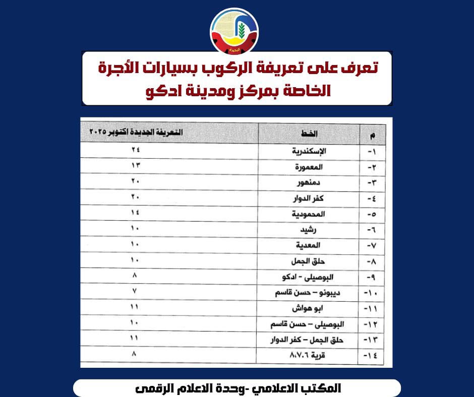 تعريفة الركوب محافظة البحيرة بعد زيادة أسعار البنزين الجديدة
