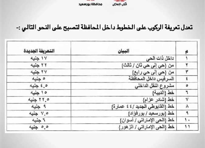 تعريفة الركوب محافظة بورسعيد بعد زيادة أسعار البنزين الجديدة