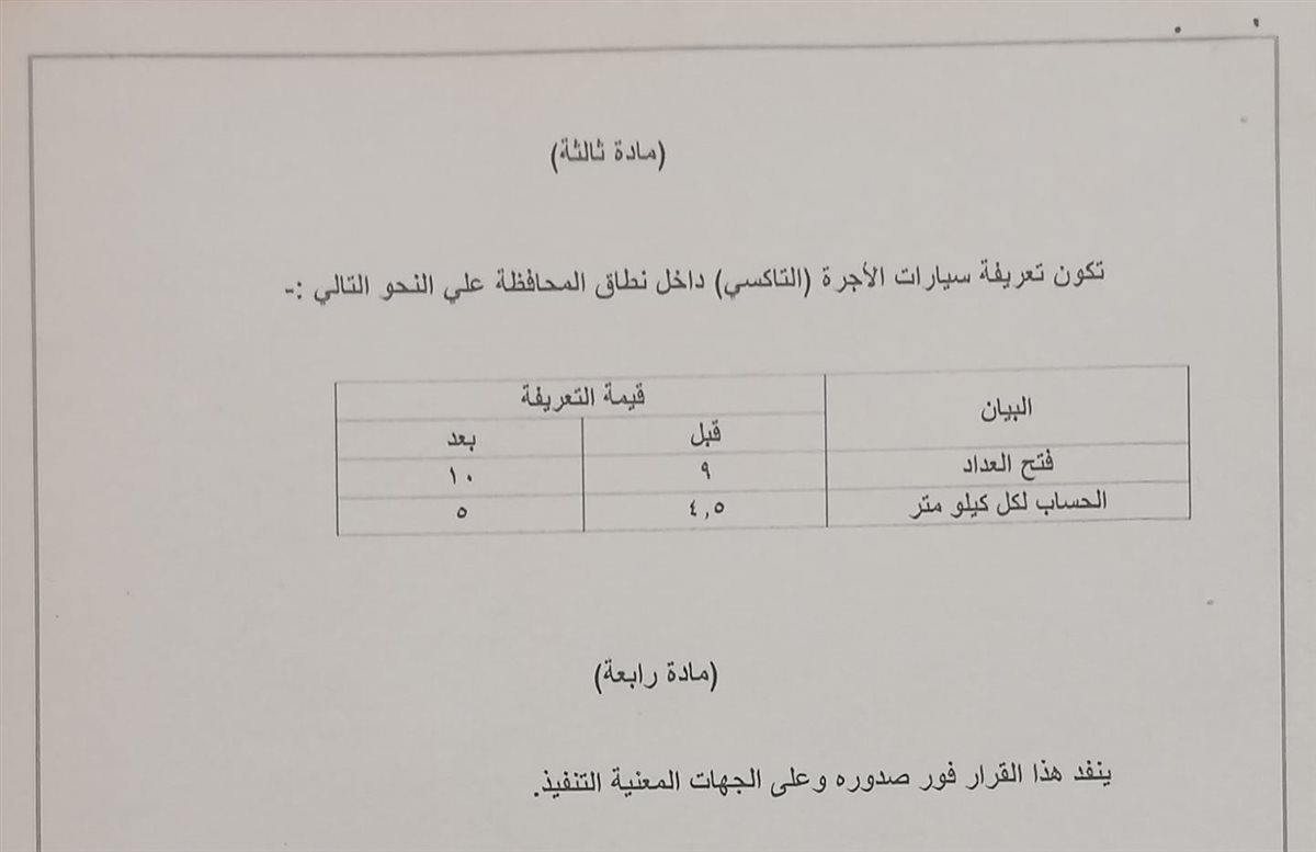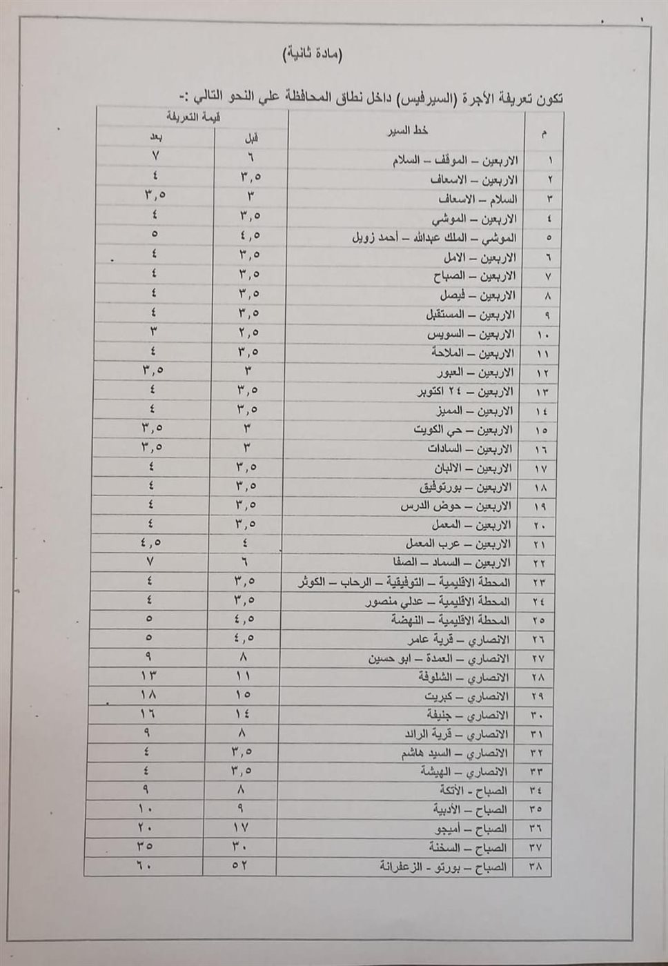 تعريفة الركوب محافظة الوادي الجديد بعد زيادة أسعار البنزين الجديدة