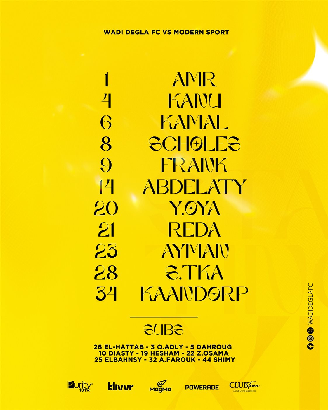 وجاء تشكيل وادي دجلة أمام مودرن سبورت كالتالى: