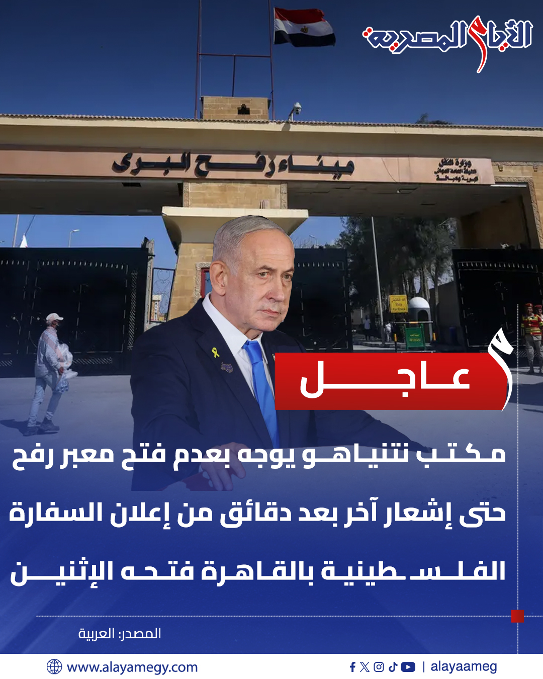 هل تم فتح معبر رفح أمام الأفراد؟ أفادت مصادر عبرية بأن مكتب رئيس الوزراء بنيامين نتنياهو أصدر توجيهات بعدم فتح معبر رفح حتى إشعار آخر، وذلك بعد دقائق من إعلان السفارة الفلسطينية بالقاهرة عن موعد فتحه.