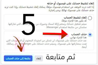 - تحديد خيار “حذف الحساب نهائيًا” ثم الضغط على “متابعة إلى حذف الحساب”.