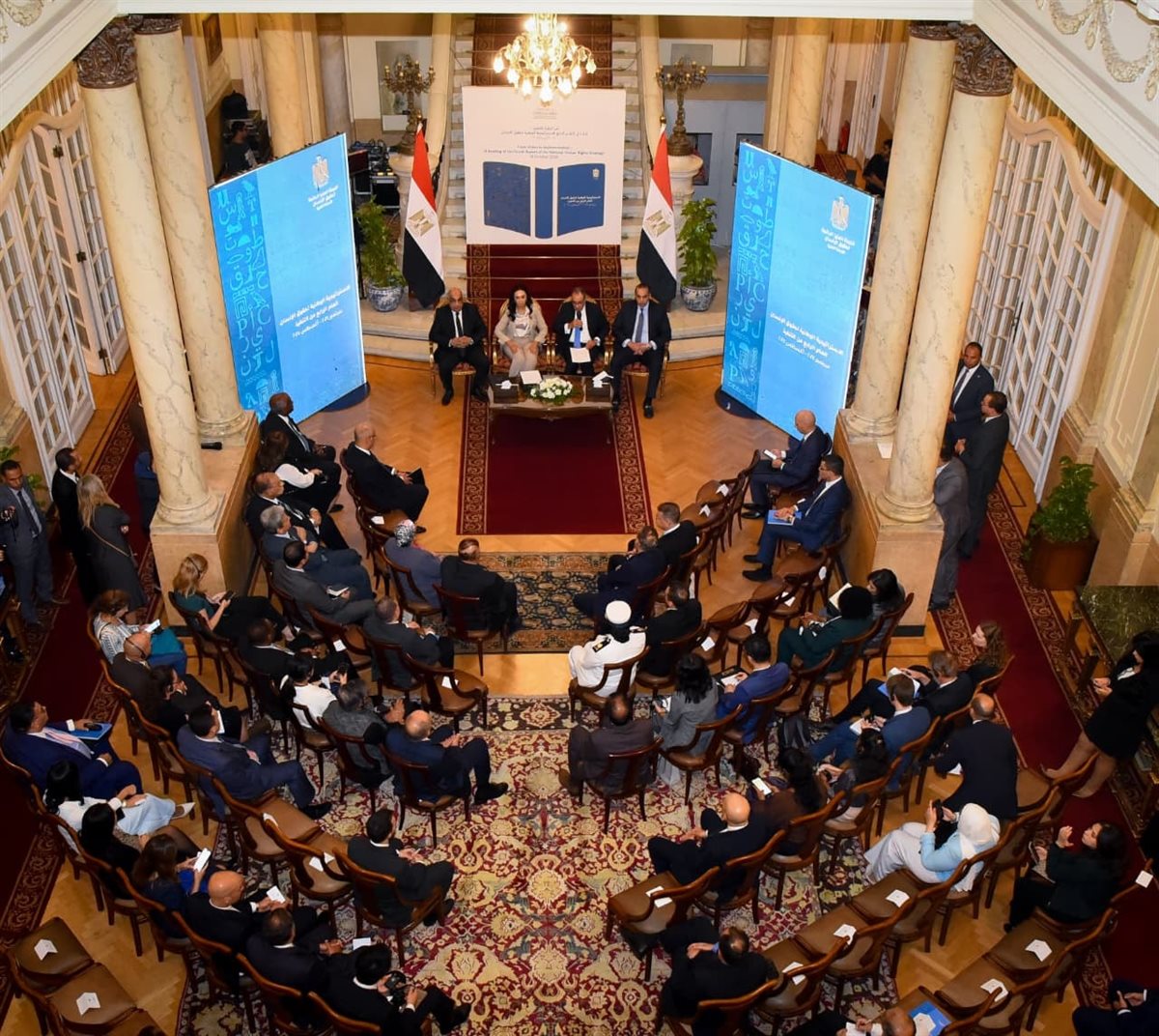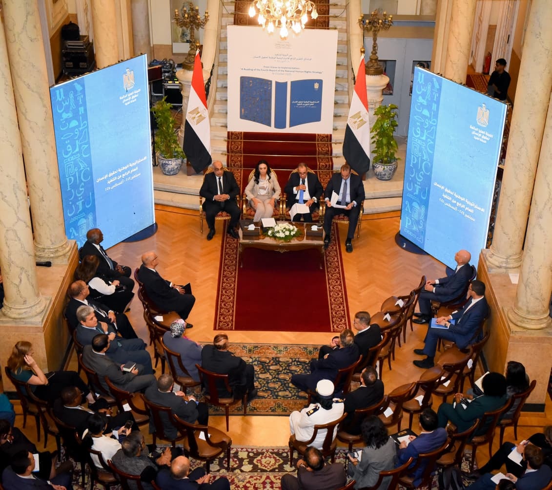 نظمت وزارة الخارجية والهجرة وشئون المصريين بالخارج مساء السبت ١٨ أكتوبر ندوة لإطلاق التقرير الرابع لتنفيذ الاستراتيجية الوطنية لحقوق الإنسان، حضرها الدكتور بدر عبد العاطى وزير الخارجية والهجرة وشئون المصريين بالخارج، بصفته رئيس اللجنة العليا الدائمة لحقوق الإنسان، والمستشار عدنان فنجري وزير العدل، والدكتورة مايا مرسي وزيرة التضامن الاجتماعي، والمستشار محمود فوزي وزير الشئون النيابية والقانونية والتواصل السياسي، والنائب طارق رضوان رئيس لجنة حقوق الإنسان بمجلس النواب، والسفير محمود كارم رئيس المجلس القومي لحقوق الإنسان، ورؤساء وممثلي المجالس المختلفة أعضاء اللجنة العليا الدائمة لحقوق الإنسان، وعدد من كبار المسؤولين وممثلى منظمات المجتمع المدني والبعثات الأجنبية في القاهرة.