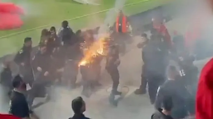 ولوحظ أن فور إعلان إلغاء المباراة تحولت الاشتباكات بين الشرطة والجماهير، لتُظهر اللقطات المصورة حالة الاضطرابات القوية خارج ملعب "بلومفيلد" والتي شهدت دهس طفل بواسطة شرطي، واعتقال 40 مشاغبًا.
