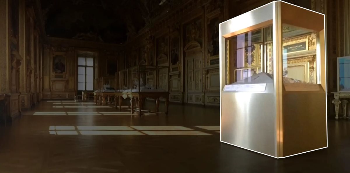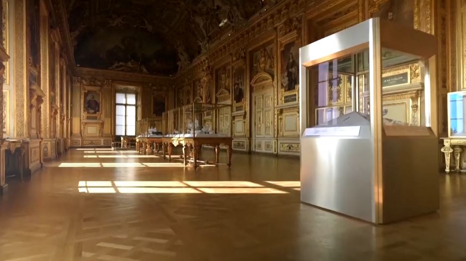 تتواجد مجموعة العناصر التي يرتديها أفراد العائلة المالكة الفرنسية والحكام الإمبراطوريون في خزائن معدنية محاطة بالفخامة الذهبية للمعرض ولوحات القرن التاسع عشر.