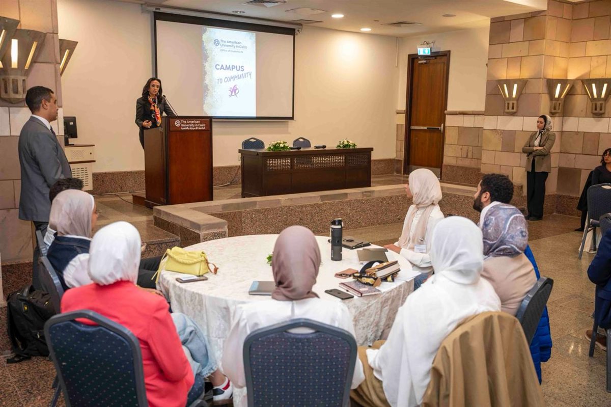 وأكدت الدكتورة مايا مرسي أن الخدمة الهادفة لا تبدأ بالنشاط؛ بل تبدأ بالفهم - فهم الاحتياجات، وتحديد الأسباب الجذرية، ووضع أهداف محددة وقابلة للقياس ومستدامة - من العمل الخيري إلى التغيير، ونرى هذا الجوهر نفسه هنا في الجامعة الأمريكية بالقاهرة - في كل مبادرة طلابية، وكل زيارة تطوعية، وكل عمل خيري، أنتم الجيل القادم من المبتكرين الاجتماعيين، صناع التغيير، إبداعكم وتعاطفكم والتزامكم هو ما سيحافظ على قوة النسيج الاجتماعي المصري.