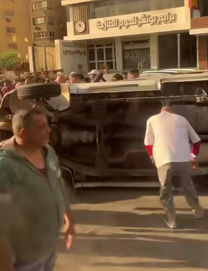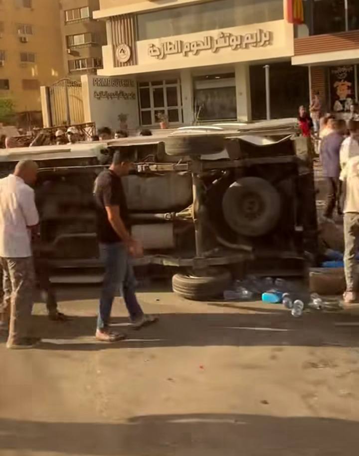 انقلاب ميكروباص من أعلى كوبري سوق السيارات بشارع أحمد الزمر (صور)