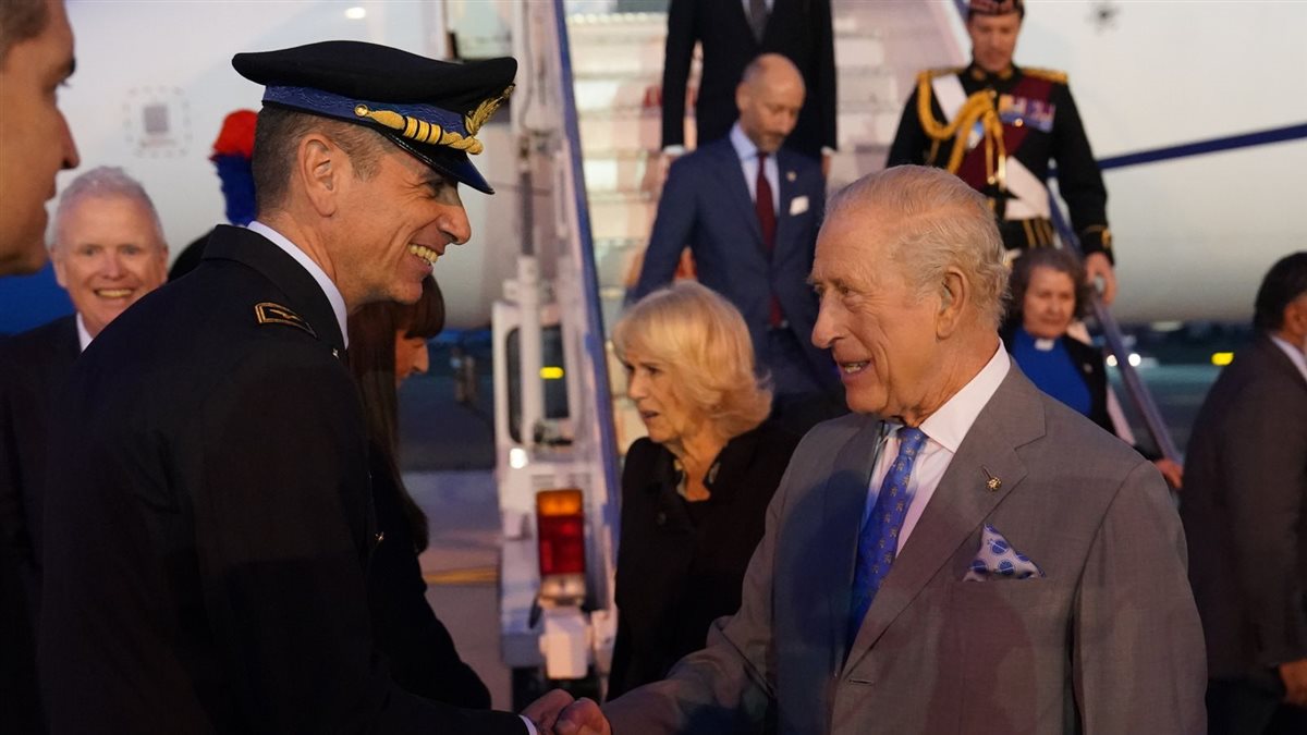 وصل الملك تشارلز الثالث والملكة كاميلا إلى مطار شيامبينو في روما، إيطاليا، في زيارة دولة إلى الكرسي الرسولي، 22 أكتوبر 2025.