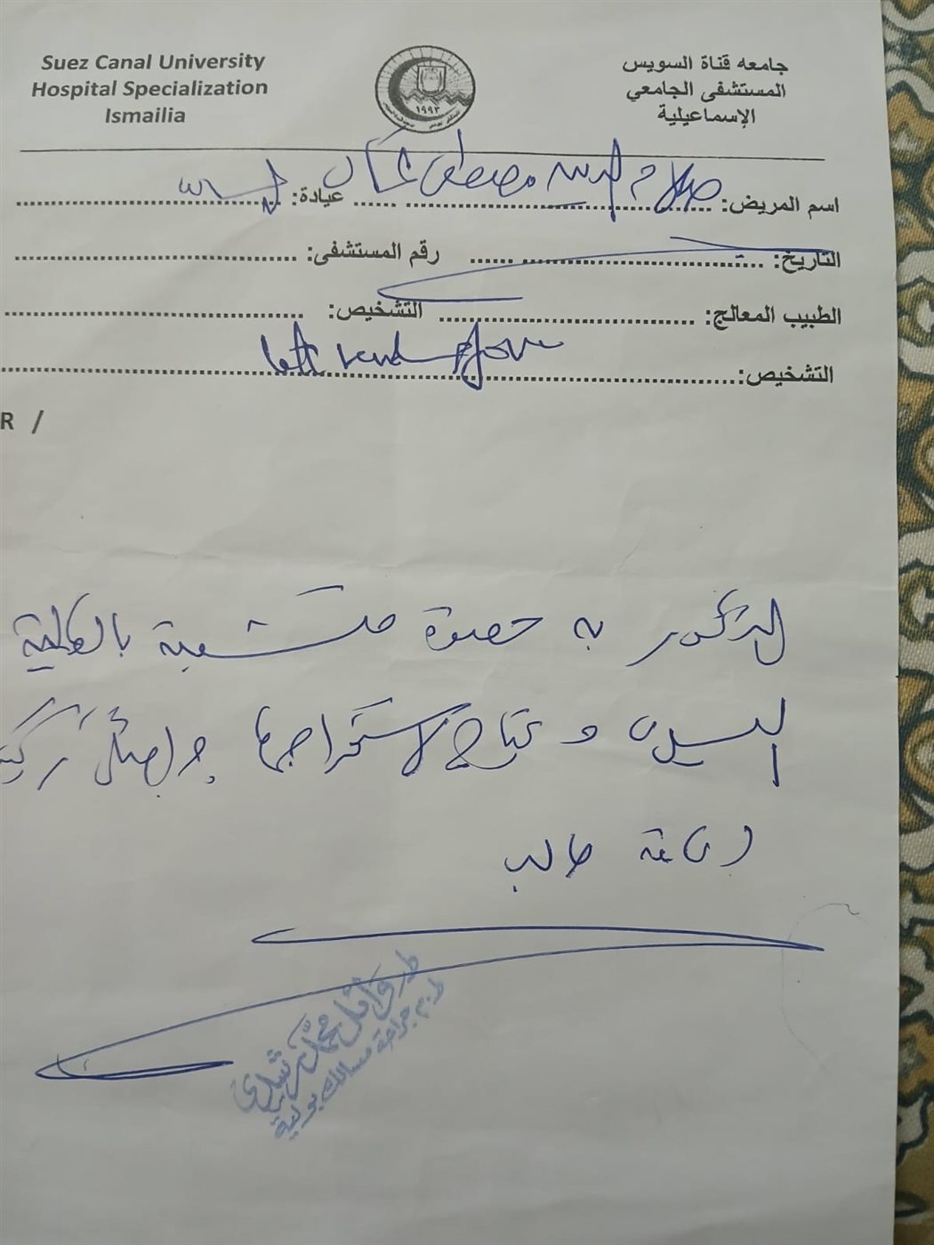 عجز تام في الذراع بسبب خطأ طبي داخل مستشفى حكومي.. ننشر نص التحقيقات|خاص