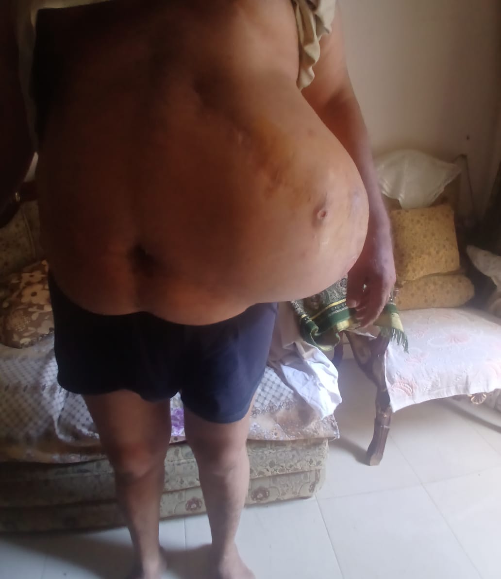 لكن الأزمة لم تنته عند هذا الحد، إذ تطورت حالته بعد العملية ليصاب بفتاق كبير، ناجم عن خطأ طبي أثناء العلاج، ما تسبب له بآلام مبرحة ومضاعفات صحية بالغة الخطورة.