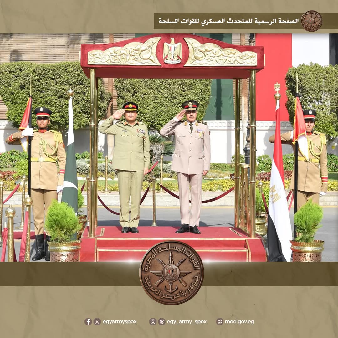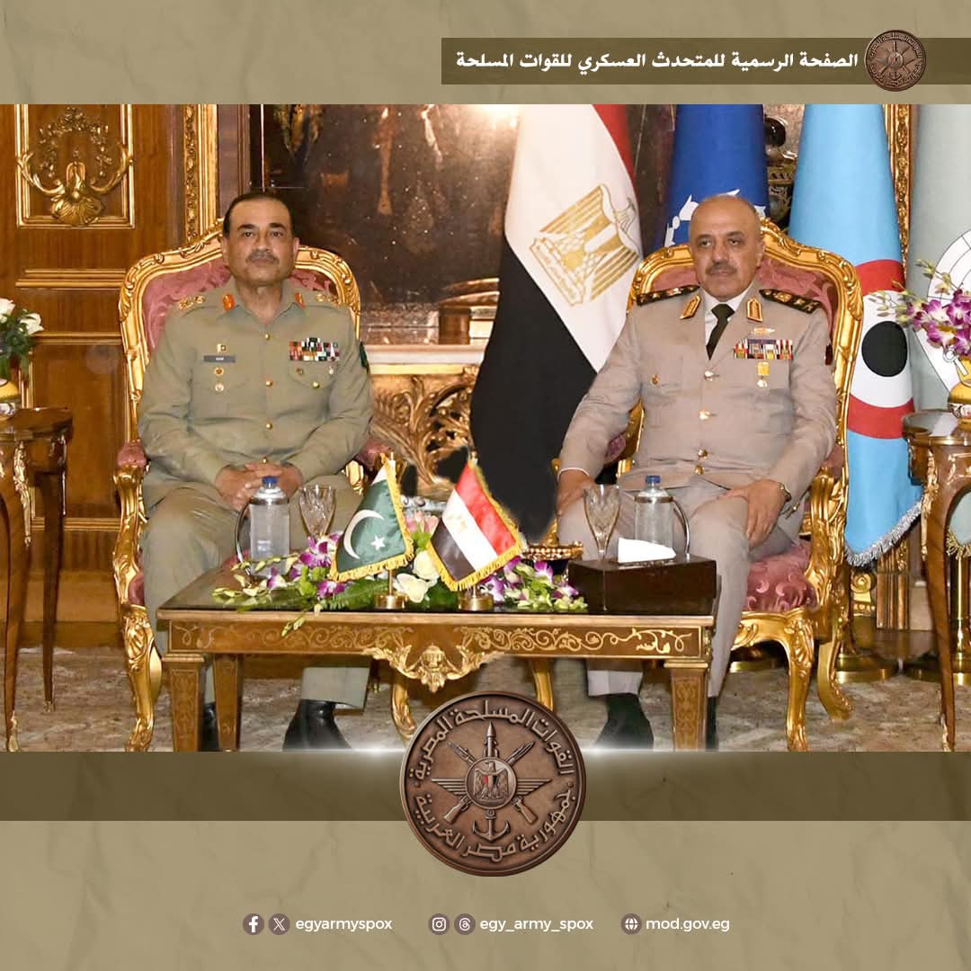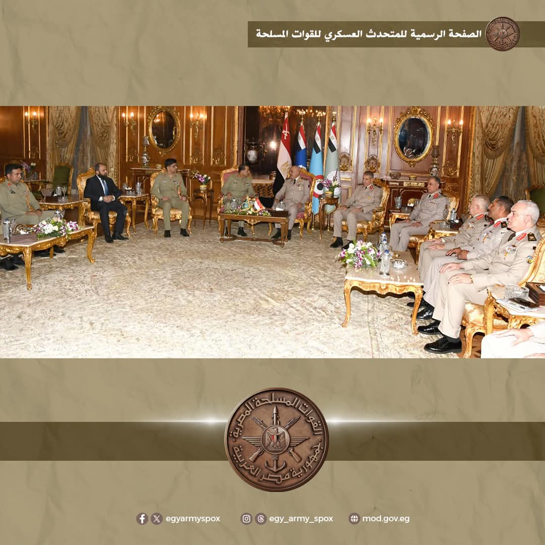 التقى الفريق أول عبدالمجيد صقر القائد العام للقوات المسلحة وزير الدفاع والإنتاج الحربي المشير عاصم منير رئيس أركان القوات البرية الباكستانية والوفد المرافق له الذى يزور مصر حالياً ، وتناول اللقاء مناقشة عدد من الموضوعات ذات الاهتمام المشترك في ضوء دعم العلاقات العسكرية بين القوات المسلحة المصرية والباكستانية ، كذلك توافق الرؤى حول العديد من الأُطر التي تدعم ركائز الأمن والسلم الدوليين .