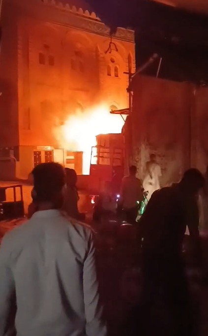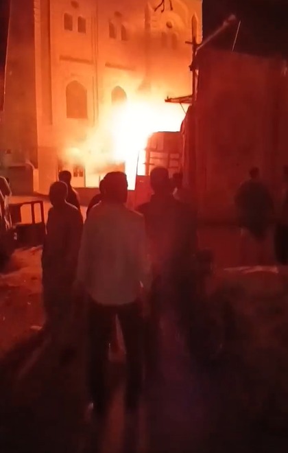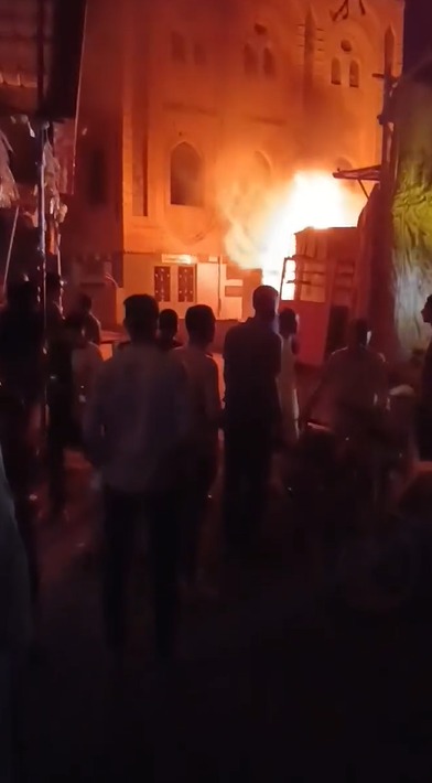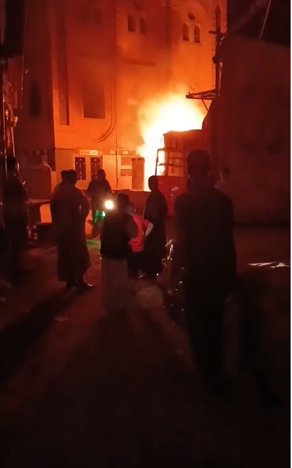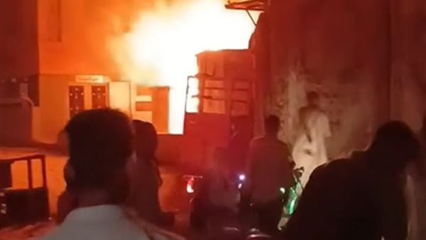 بالصور، اشتعال حريق في محول كهرباء بجوار مسجد الخن بمدينة إسنا