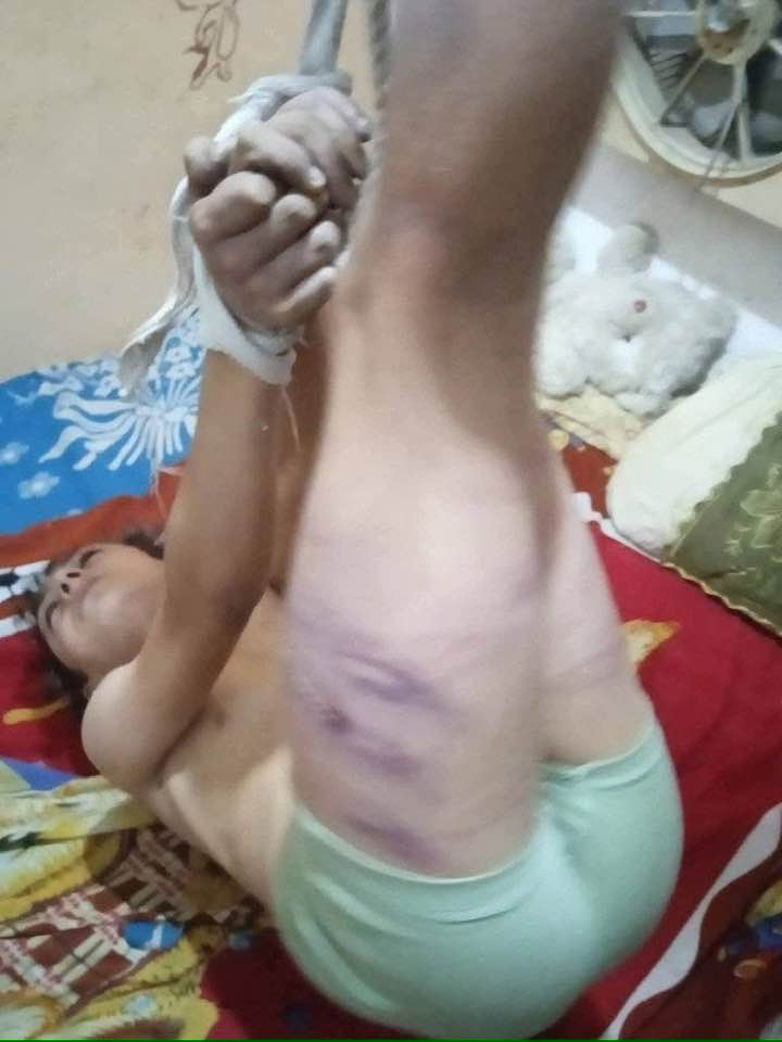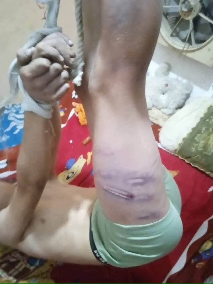 بيعلقه في السقف ويعذبه بالنار، ضبط أب يتعمد تعذيب ابنه في دمياط (صور صادمة)