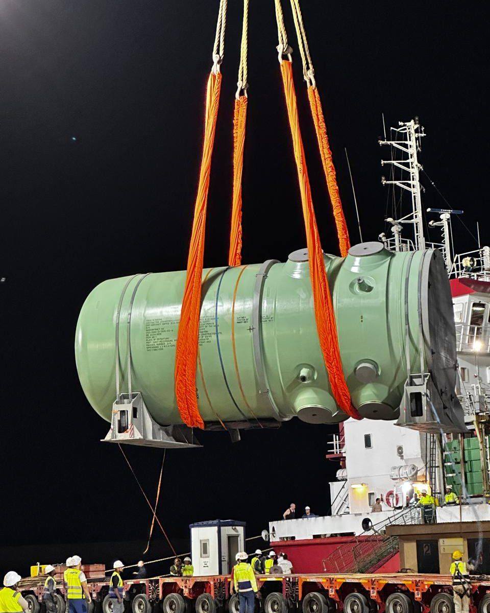 كان قد تم شحن الوعاء من روسيا الاتحادية، حيث تم تصنيعه في مصنع "إيجورا" التابع لمؤسسة "روساتوم" الروسية الحكومية، وقد استغرقت رحلته البحرية حوالي 20 يوماً من ميناء سانت بطرسبورغ.