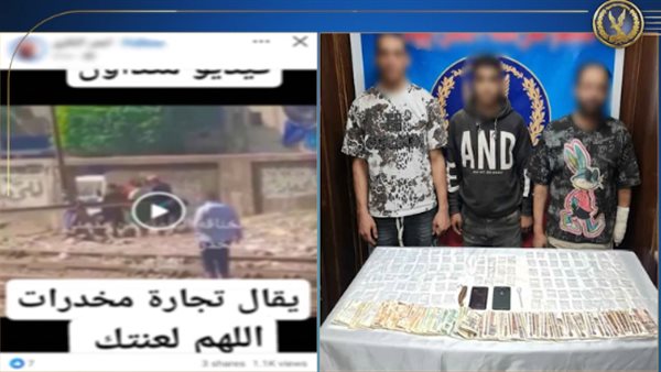 وأوضحت وزارة الداخلية أنه بالفحص تبين عدم وجود ثمة بلاغات في هذا الشأن ، وأمكن تحديد وضبط أحد الظاهرين بالفيديو (عاطل - مقيم بدائرة القسم)، وبحوزته (كمية من مخدر الآيس) وبمواجهته أقر بحيازته للمضبوطات بقصد التعاطي، وتحصله عليها من (عنصرين جنائيين – مقيمان بذات الدائرة)، أمكن ضبطهما وبحوزتهما (كمية لمخدري "البودر، الآيس" - سلاح أبيض ) وبمواجهتهما اعترفا بحيازتهما للمواد المخدرة بقصد الإتجار.