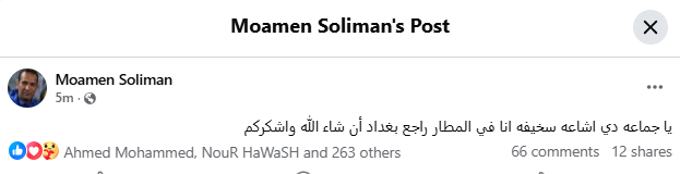 ورد سليمان على الشائعة عبر صفحته الرسمية على موقع التواصل الاجتماعي فيسبوك، قائلاً: «يا جماعة دي إشاعة سخيفة، أنا في المطار راجع بغداد إن شاء الله، وأشكركم على اهتمامكم».