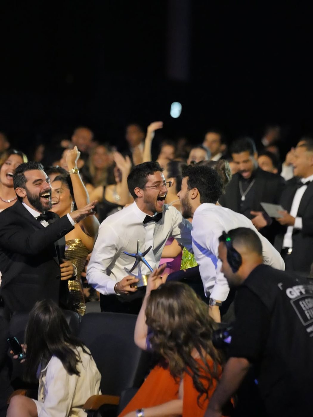 وقال في كلمته: “أخيرًا جائزة أفضل ممثل وصلت بلدها مصر، وأنا اتربيت في الصناعة دي من وأنا طفل، وسط الناس دي، وفخور إني جزء من هذا الامتداد الفني العظيم”.