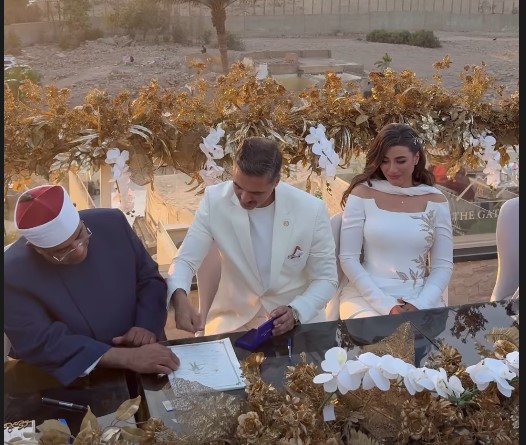 عقد قران هايدي موسى على المذيع محمد غانم أمام الأهرامات في أجواء رومانسية (فيديو)