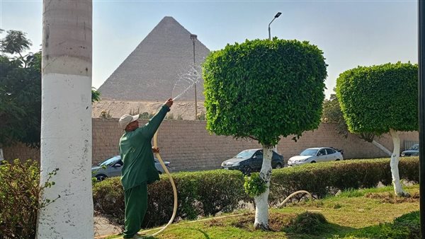 تجميل وتشجير وتزيين، مظهر حضاري خلاب إلى المتحف المصري الكبير (شاهد)