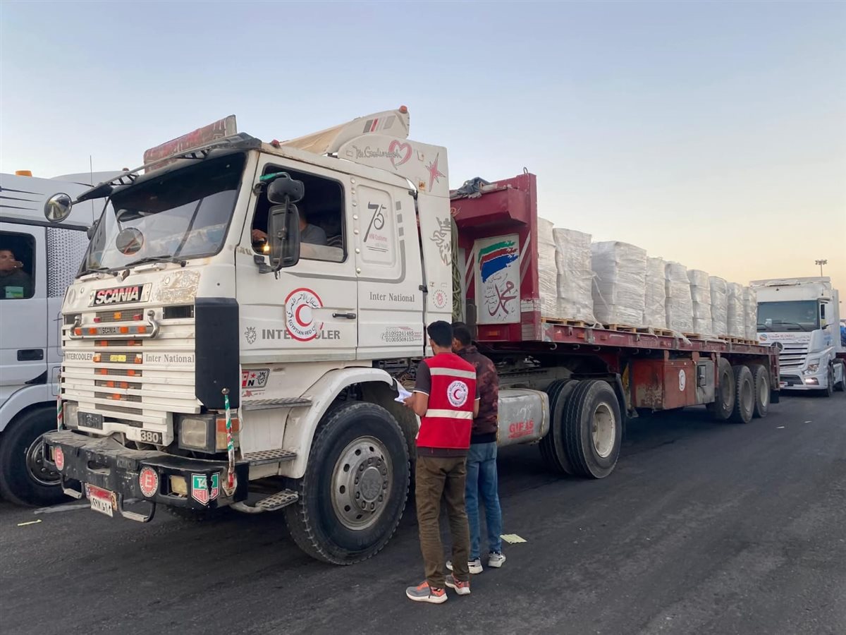 بـ8300 طن مساعدات، الهلال الأحمر يُطلق قافلة «زاد العزة 56» إلى غزة