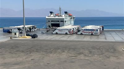 أما على الضفة الأخرى في ميناء نويبع، فيتواصل العمل على مدار الساعة، 3400 طن بضائع و300 شاحنة عبرت البحر في رحلات مكوكية لثلاث سفن هي سينا والحسين ونيوعقبة، تجسد دور الميناء بوصفه همزة وصل تجارية وإنسانية.