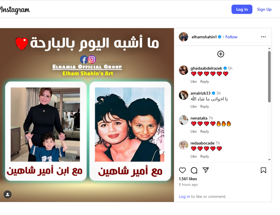 لفتت "شاهين" أنظار متابعيها باللقطة التى تجمع شقيقها وطفلة فى نفس السن تقريبا، وعلقت قائلة " ما أشبه اليوم بالبارحه ، مع أمير شاهين ،مع ابن أمير شاهين"، تفاعل معها جمهورها ومتابعيها ونالت ردود أفعال واسعة.