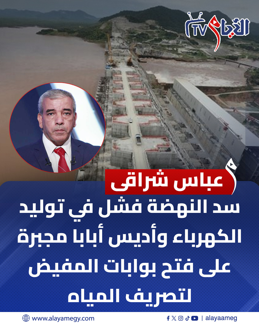 ولفت عباس شراقي إلى أن افتتاح السد رسميًا في سبتمبر 2025 جاء قبل اكتمال التشغيل الفني للمشروع، إذ لا تعمل معظم التوربينات حتى الآن، ما أجبر إثيوبيا على فتح بوابات المفيض دون إنتاج كهرباء، موضحًا أن التأجيل السابق لافتتاح السد كان بسبب إخفاقات فنية في التوربينات، مؤكدًا أن محاولة إثيوبيا إخفاء هذه المعوقات ساهمت في حدوث الفيضانات الصناعية.