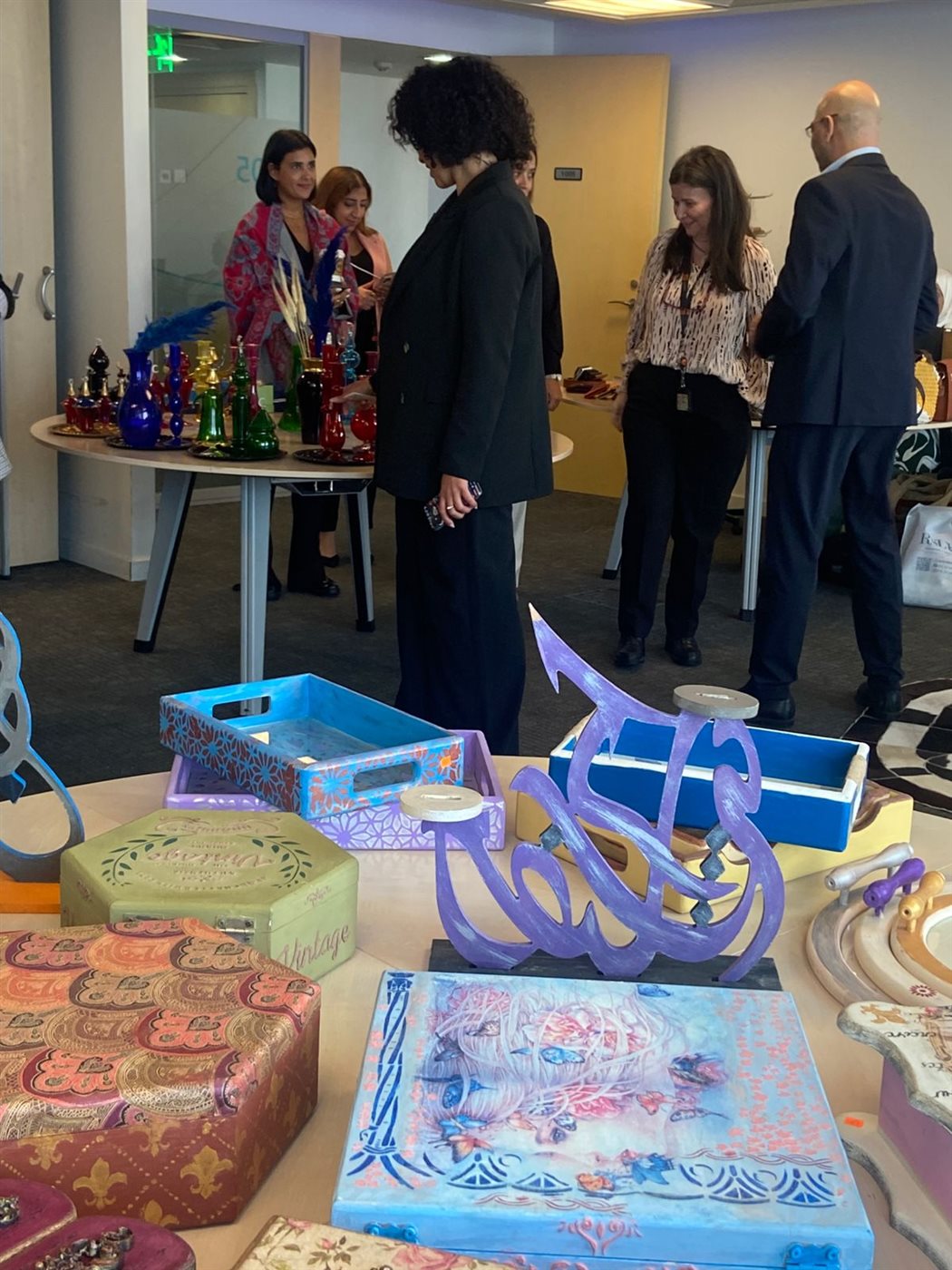 بالإضافة لوجود التحف الفنية من الزجاج ديكوباج مفروشات ملابس ولوحات خشبية بتصميماتها المتميزة والمطعمة بالأحجار والجلد الطبيعي، كذلك منتجات سيوة المتميزة بطابعها الأصيل وتصميماتها الرائعة، ووجدت المعروضات إقبالا واسعا من الحضور لما تميزت به من الجودة والأصالة.