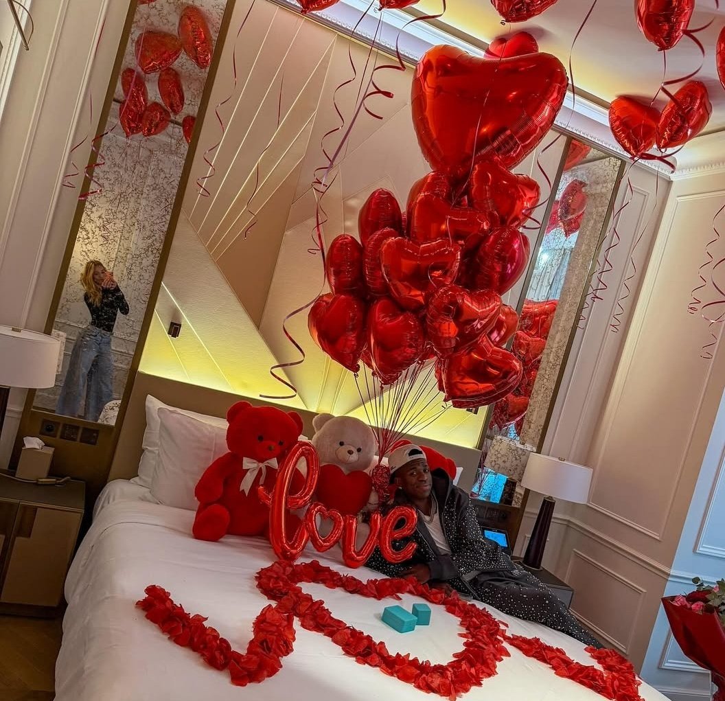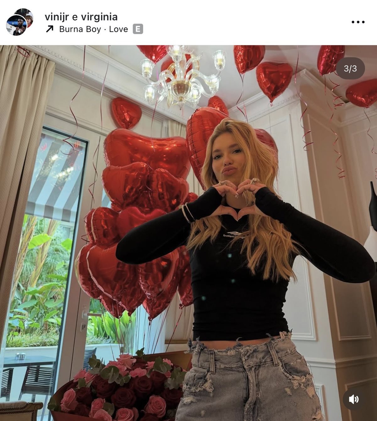 ونشر الثنائي عبر حسابيهما على «إنستجرام» مجموعة من الصور التي وثّقت لحظة طلب فينيسيوس يد فيرجينيا، حيث فاجأها داخل غرفة نوم فاخرة، زُينت بالبالونات الحمراء والورود، بينما قدّم لها خاتم الخطوبة داخل صندوق أنيق وسط أجواء احتفالية مميزة.