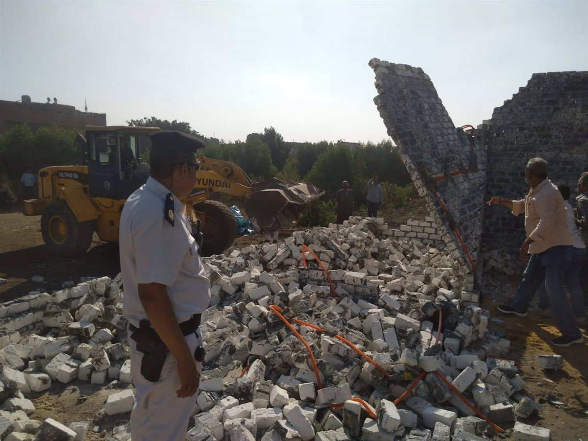 وفي نفس السياق، تم إزالة حالتين في كفر حجازي، عبارة عن غرفتين من الطوب والأسمنت وسور من الصاج على مساحة 160 مترًا، بالإضافة إلى ثلاث حالات في بهرمس شملت بناء بالطوب والأسمنت وسورًا بداخله غرفة وسورًا آخر على مساحة 280 مترًا، مع فك شدّة خشبية لعمل سملات خرسانية في برقاش داخل الحيز العمراني قبل استكمال الأعمال المخالفة.