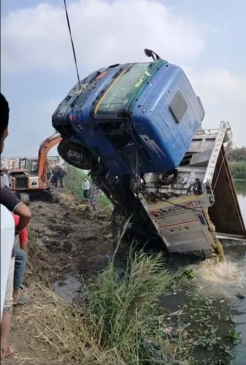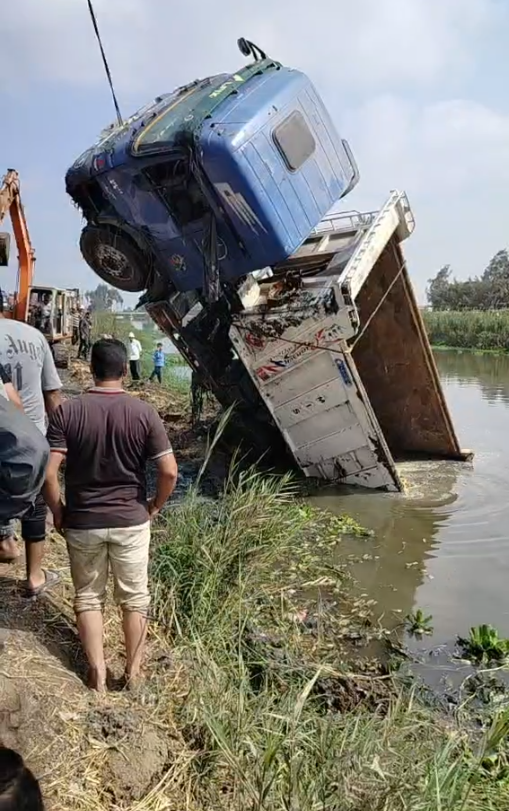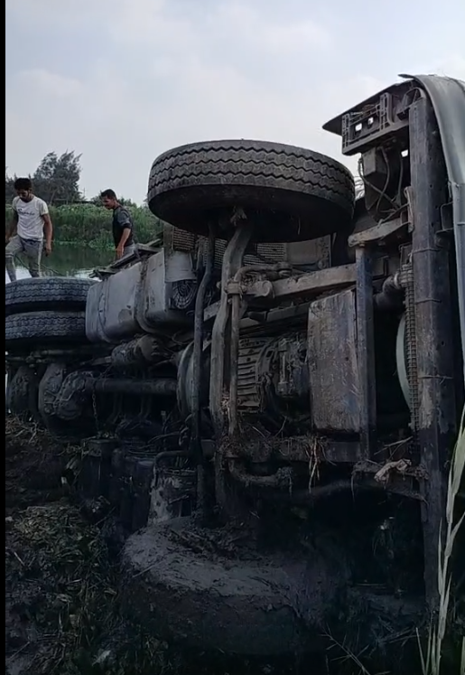 سبب انقلاب سيارة تريلا داخل مصرف مائي بمحافظة الدقهلية