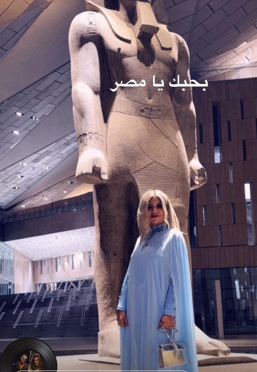 ومن ناحية آخرى، وضعت صورتها من أمام تمثال رمسيس، وعلقت نصًا بنحبك يامصر، بأغنية تحيا مصر.