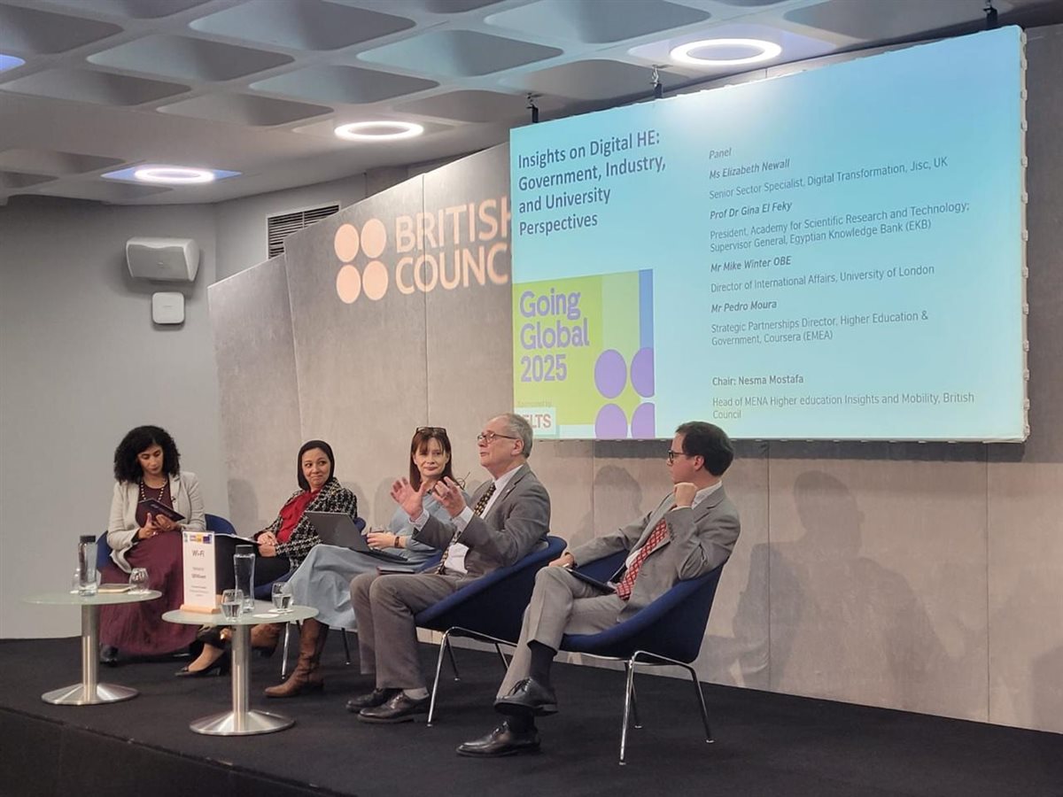 وشهدت مشاركة الدكتورة جينا الفقي، القائم بأعمال رئيس أكاديمية البحث العلمي والتكنولوجيا والمشرف العام على بنك المعرفة المصري، إلى جانب خبراء دوليين من جامعة لندن (University of London)، وجيسك (Jisc)، وكورسيرا (Coursera).
