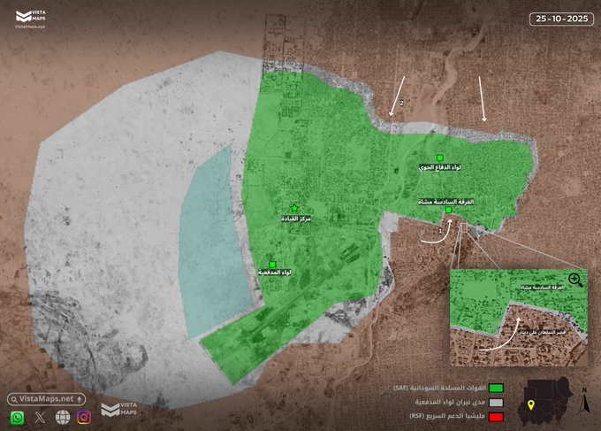 نشر حساب " VISTA MAPS" المعني بتحليل معلومات الخرائط ومناطق السيطرة في السودان تفاصيل ما جرى قبل سقوط الفاشر ولماذا سقطت؟