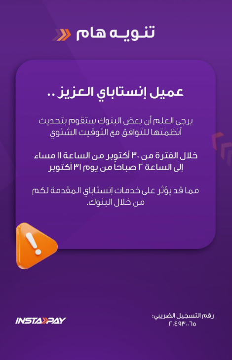عطل مؤقت في خدمات "إنستاباي" بسبب تحديث أنظمة البنوك لهذا السبب