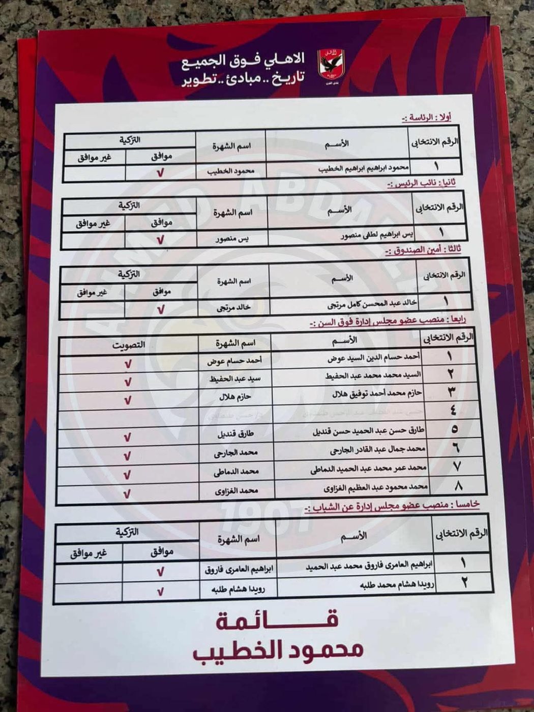 قائمة الخطيب في انتخابات الأهلي وشروط الفوز بالتزكية